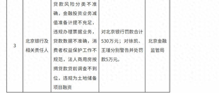 行政处罚信息公开表透露,北京银行及关连连累东说念主因贷款风险分类不准确,金融投资业务减值准备计提不迷漫,违法办理单子业务,贷款数据不准确,残害者权力保护职责不顺序九游会J9,法东说念主商用房按揭贷款贷前访问不到位,违法为地盘储备花样融资等犯警违法行径,对北京银行罚金共计530万元;对徐凯、王瑾折柳告诫并处罚金5万元。(信网记者)