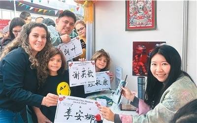 秘鲁上帝教大学孔子学院参加当地文化展,成立“书写华文名字”展位。