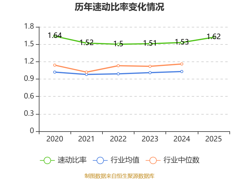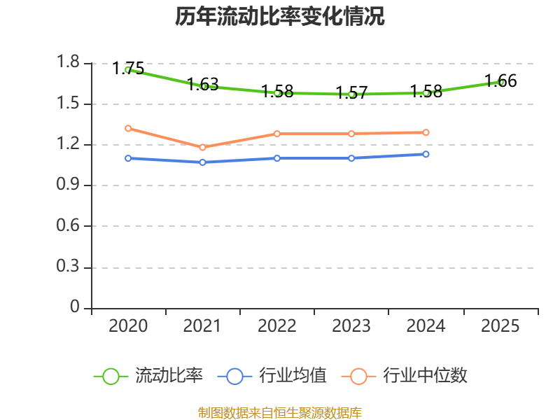 2025年,公司流动比率为1.66,速动比率为1.62。
