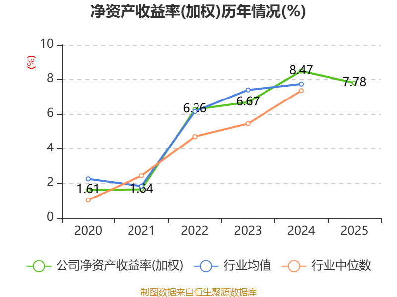 数据清晰,2025年公司加权平均净金钱收益率为7.78%,较上年同时着落0.69个百分点。公司2025年干预本钱酬报率为6.83%,较上年同时着落0.59个百分点。
