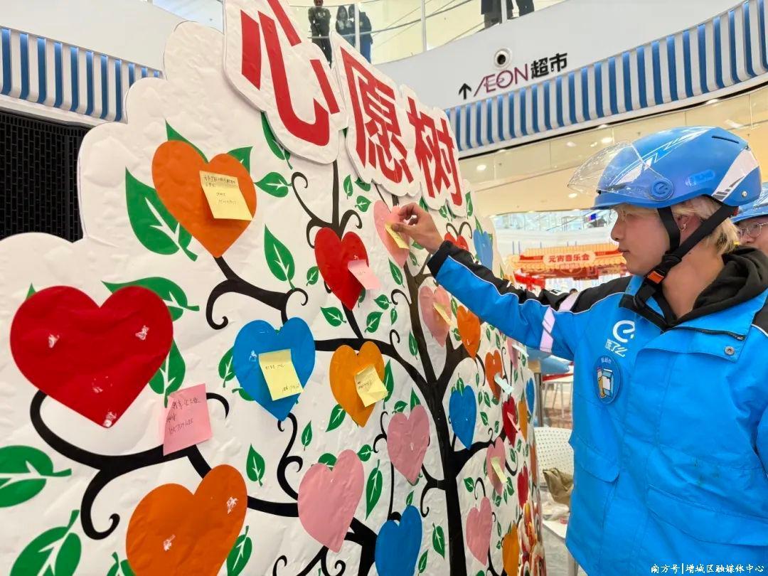 活动现场,一棵挂着心愿卡的心愿树畸形引东谈主精良。快递员、外卖员、网约车司机等新办事群体纷纷写下我方的小防备愿,但愿通过社会各界的共同戮力,让这些“微心愿”得以散伙,让他们在新的一年里收货更多的幸福和新生。