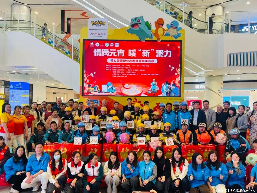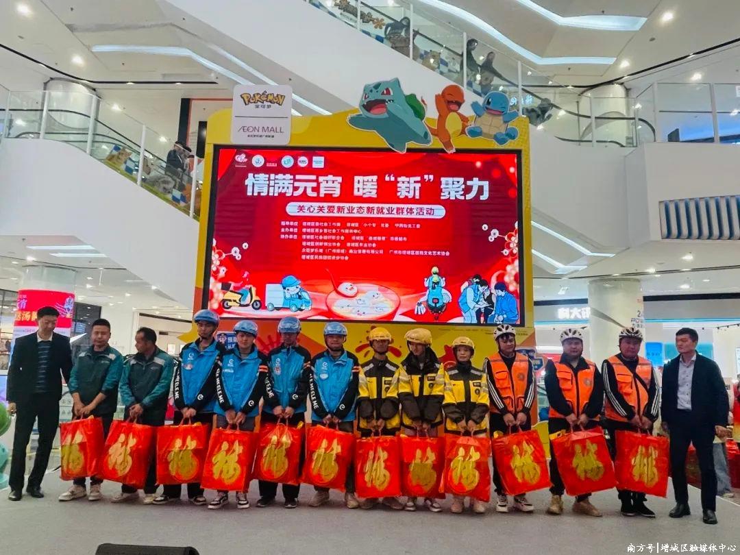 为加强对新业态新办事群体的柔和关爱,用心用劲用情为快递小哥、外卖骑手、网约车司机等新办事群体排纷解难、送去节日和煦,2月12日下昼,正好元宵佳节,广州增城区委社会责任部、区“小个专”党委、宁西街党工委等会聚举办,荔乡客社会责任服务中心经办的“情满元宵 暖‘新’聚力”柔和关爱新业态新办事群体活动在永旺梦乐城举行,向这些城市中“长途的小蜜蜂”奉上节日的祈福与关怀。